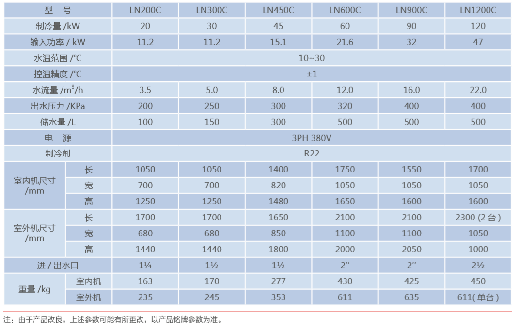 根據用戶要求的制冷量而定制,分為室內機和室外機,視功率大小室外機或為單臺和多臺分別控制運行。配 7 寸 PLC 彩色液晶觸摸屏,功能強大,結構緊湊。室內控制系統無噪音,無排放,節能環保。